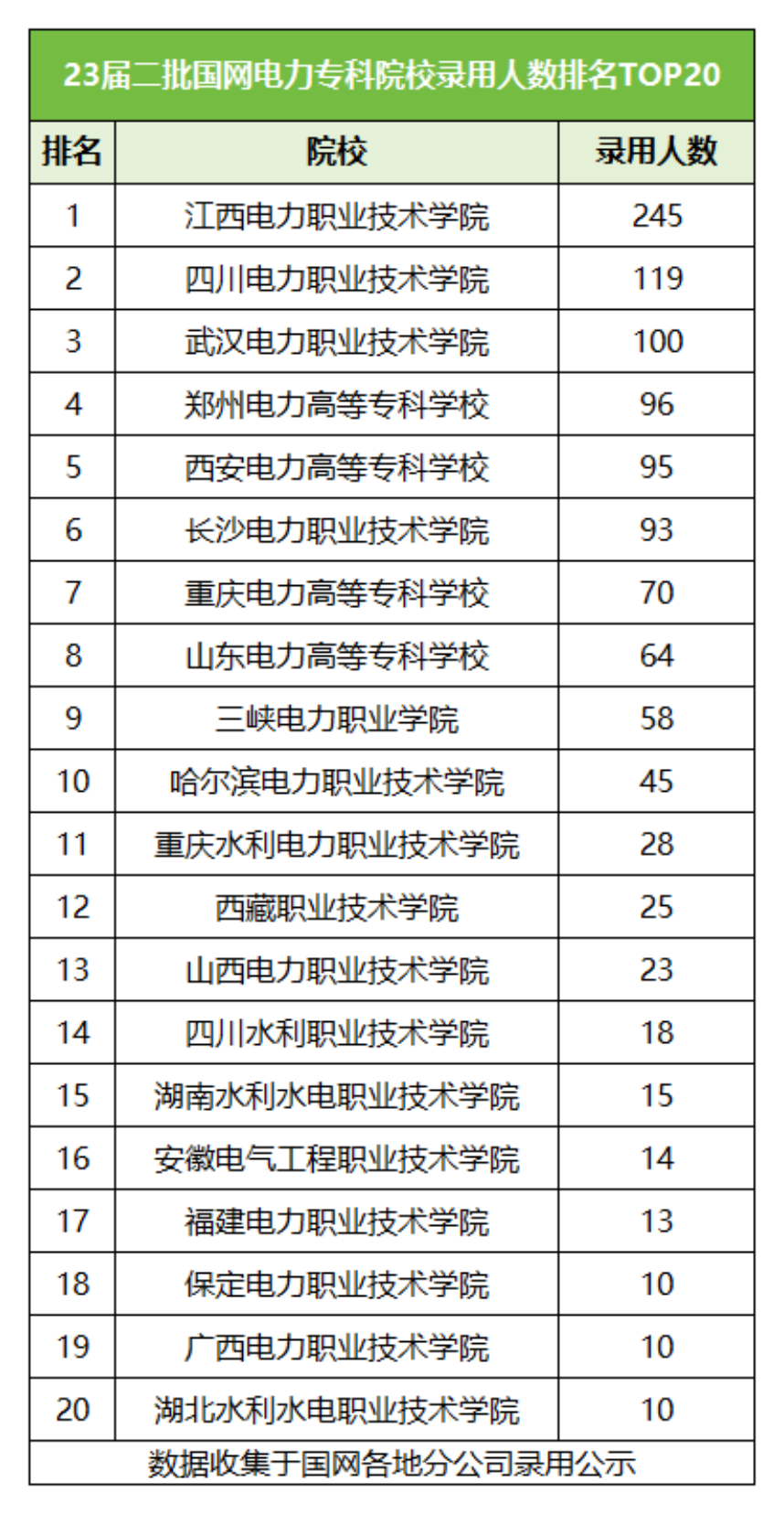 但高职专科的学生也有很大的机会被国网录用,通过历年国网二批招录公示名单可以看到,每年都有很多电力职业技术学院的毕业生被国网录用,甚至在2023届国网招录中,江西电力职业技术学院就有245名毕业生入职国网分公司。