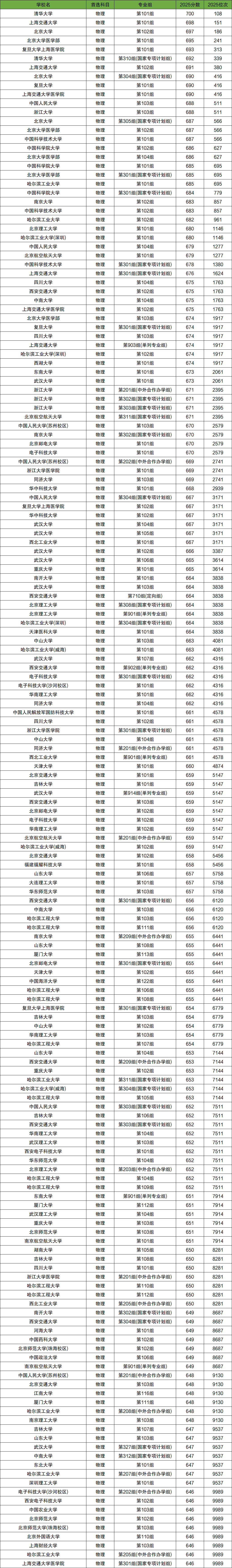 1、物理类前1万名:清华大学、北京大学、上海交通大学