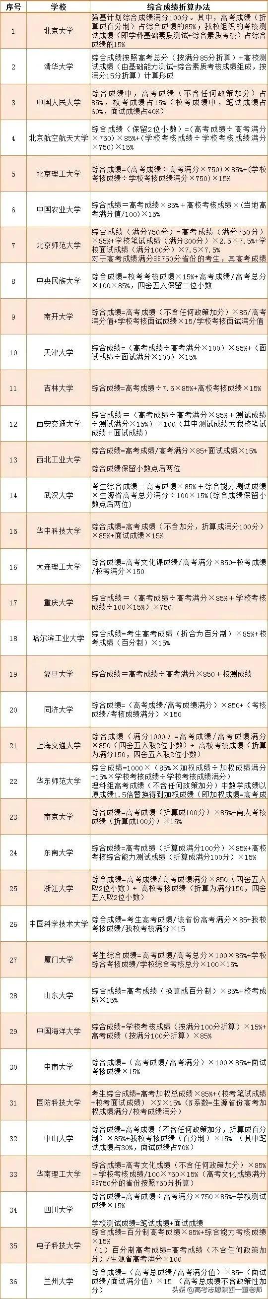 2021年强基计划招生院校综合成绩折合办法