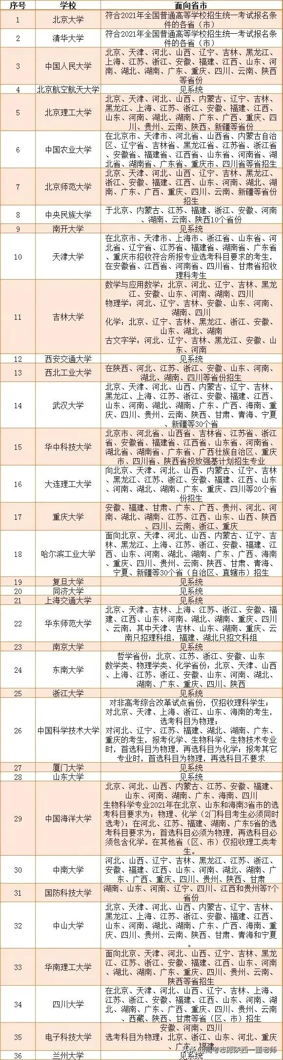 2021年强基计划院校招生范围