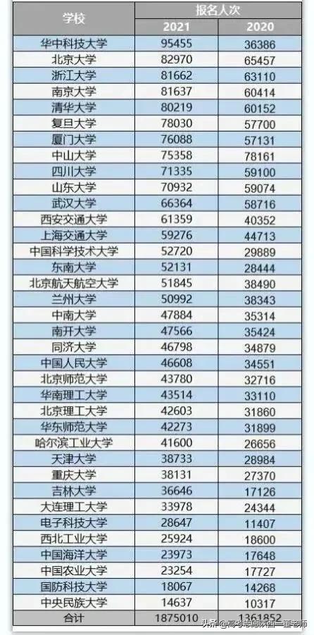 2020年和2021年强基计划报名人数比对