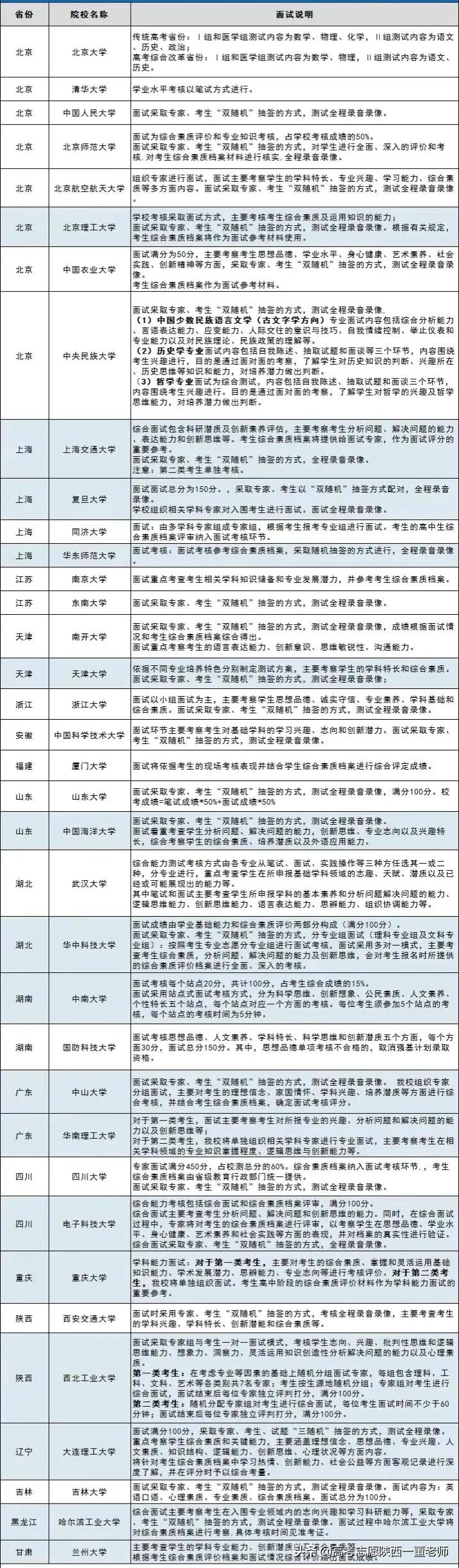 2020年强基计划招生院校面试要求