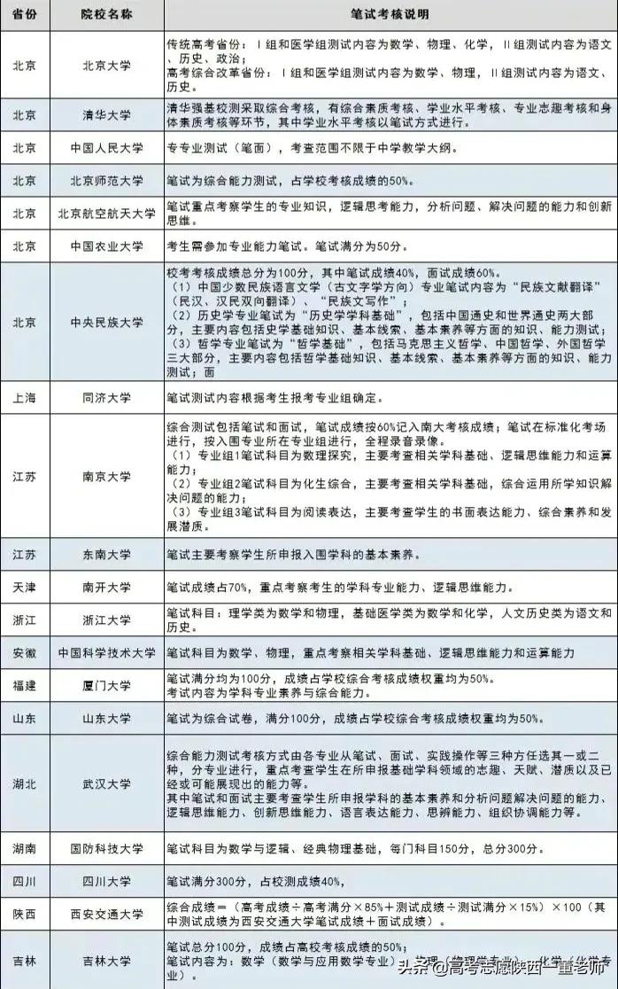 2020年强基计划招生院校笔试考核要求