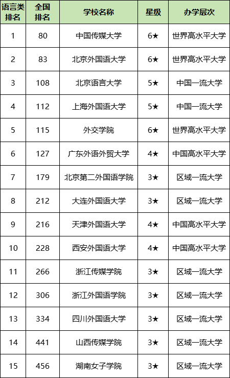一. 中国语言类大学排名2025