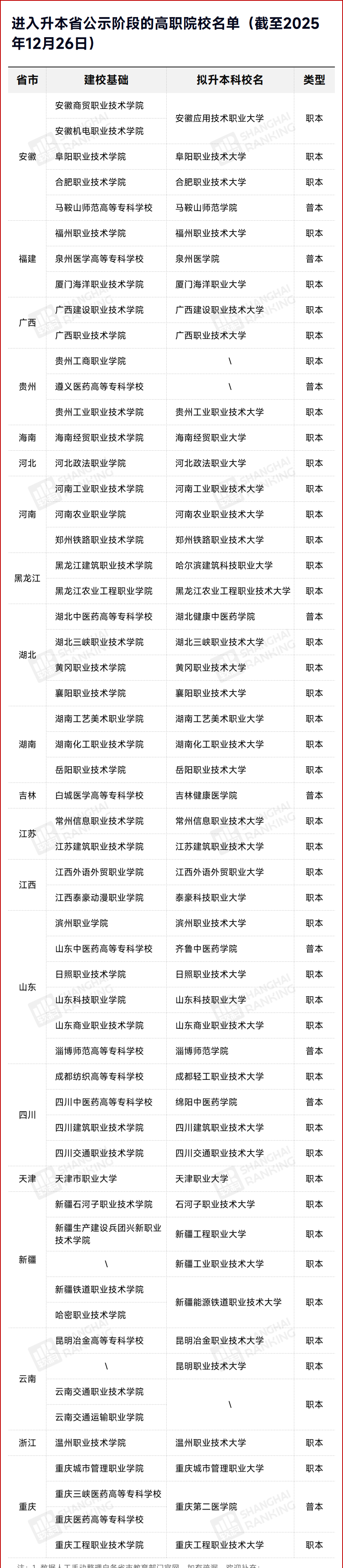 2025年成功升为本科的有:北京科技职业大学、淄博职业技术大学、黄河水利职业技术大学、吉林铁道职业技术大学、成都航空职业技术大学等,下面是2025年成功设立/升格的职业本科大学名单(36所):