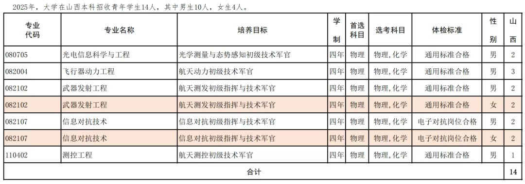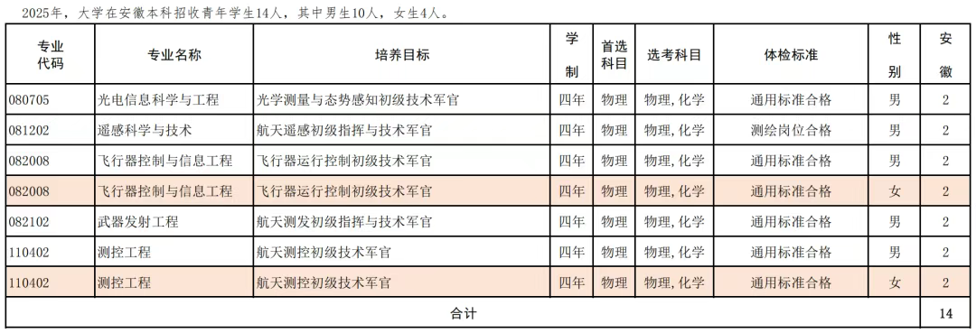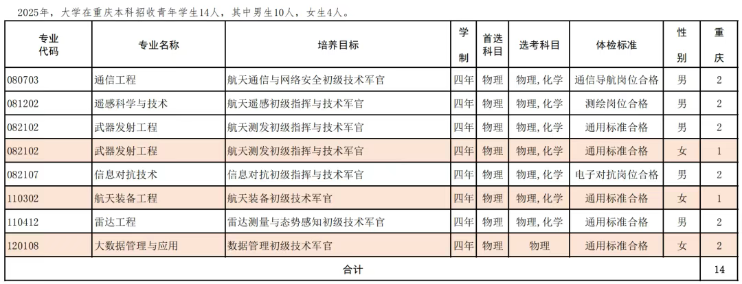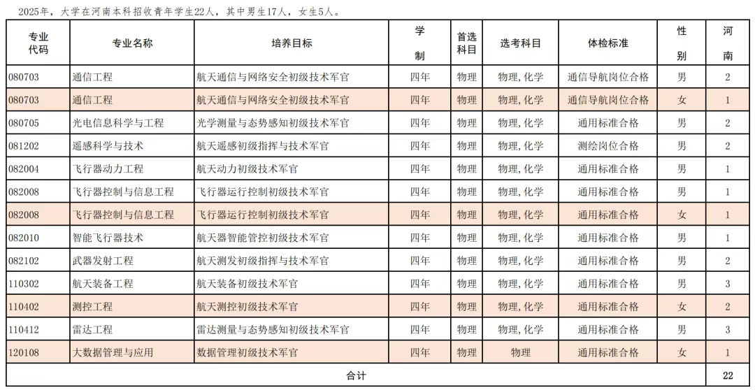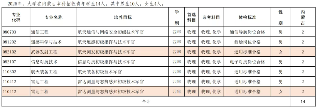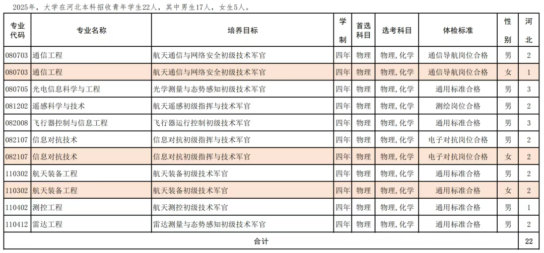 以下为2025年航天工程大学招生简章中的重要信息,供各位想要报考航天工程大学的同学参考。