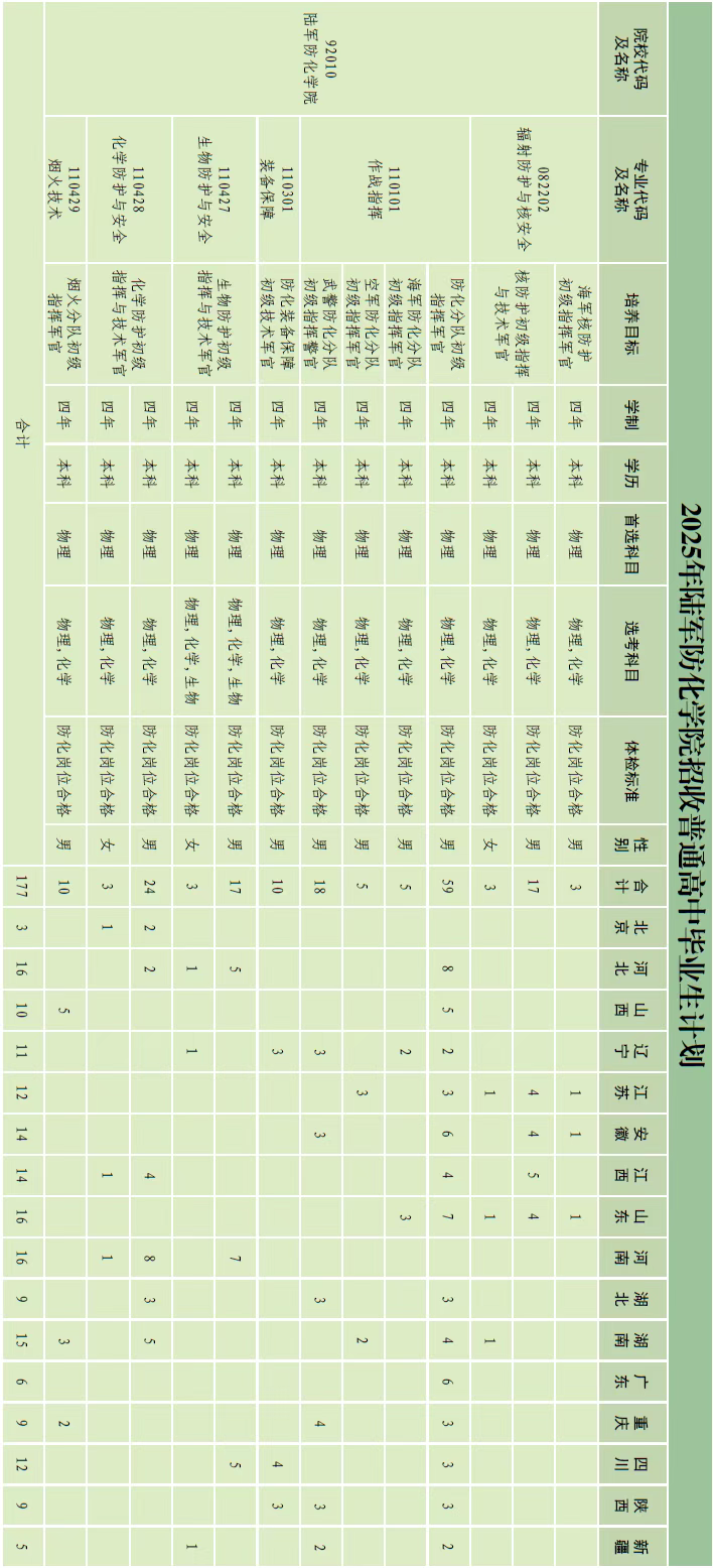 以下为2025年陆军防化学院招生简章中的重要信息,供各位想要报考陆军防化学院的同学参考。