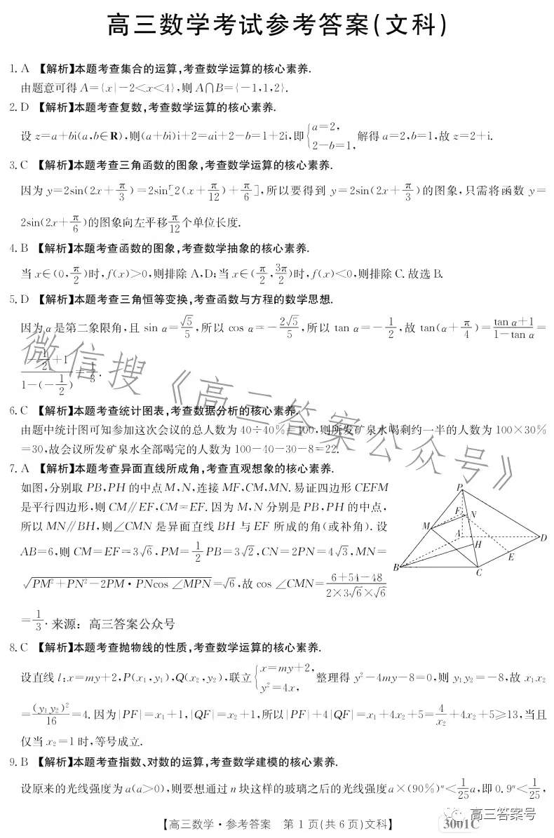 二、2023江西金太阳高三1月联考文数试卷及答案