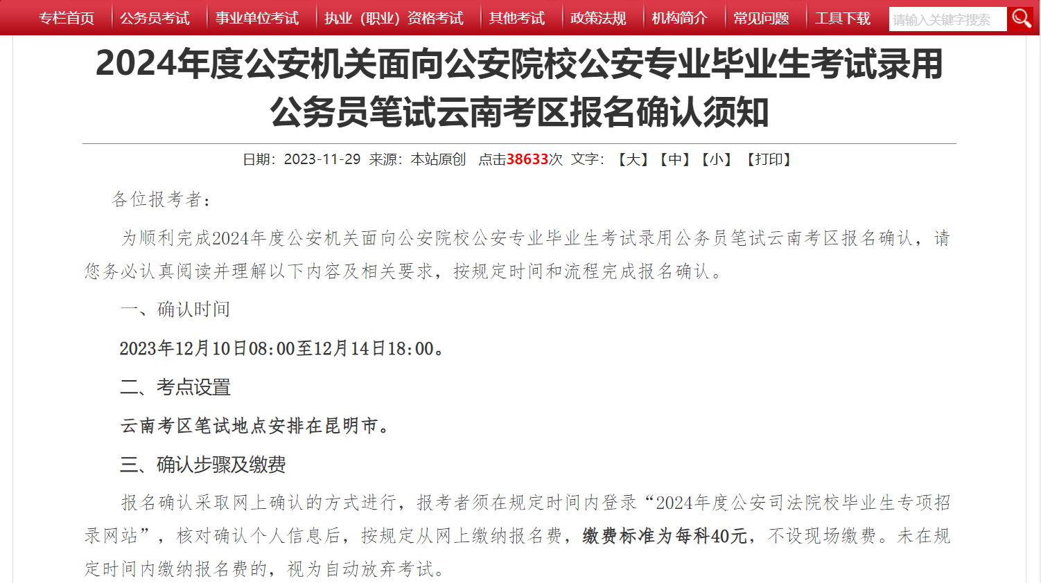 每年的公安联考报名时间大概是11月中旬,12月会确认信息和缴费,考试安排在1月初。报名入口是: