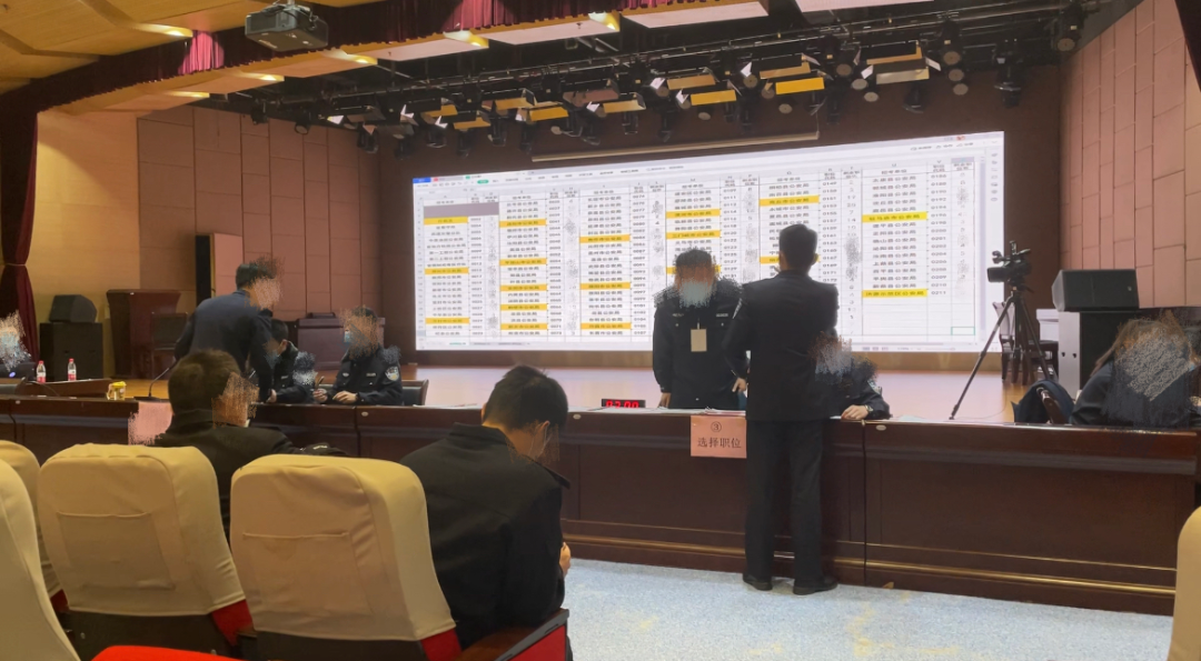 因此,大家必须提前确定好自己心仪的岗位名单,而且要及时关注这些岗位是不是已经被前面的同学选走了。下图展示了河南省的公安联考选岗现场,图中大屏幕上展示的就是可选的岗位。