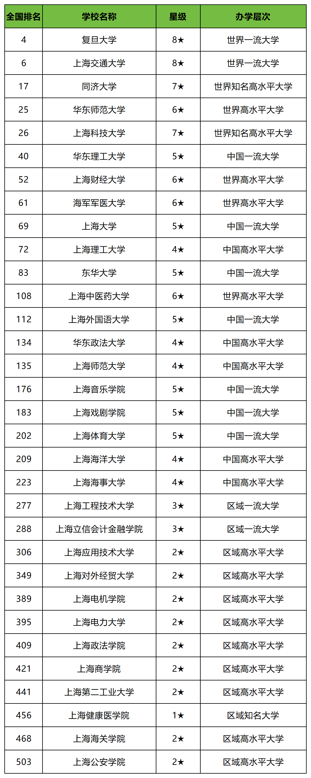 二、上海市公办本科大学排名