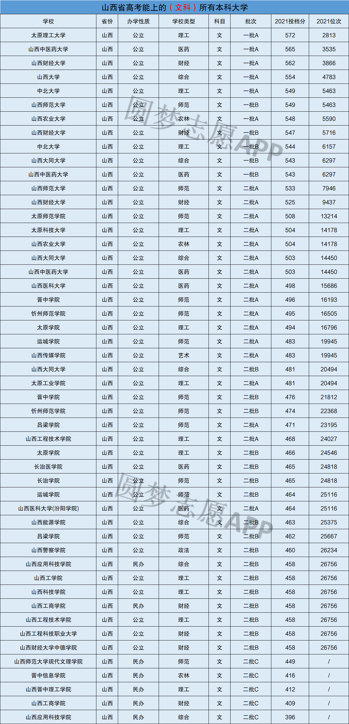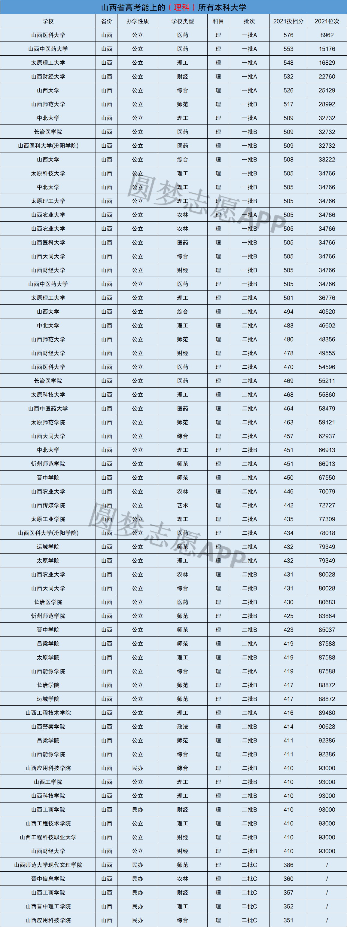 二、2022年山西省各大学录取分数线一览表(所有本科大学)