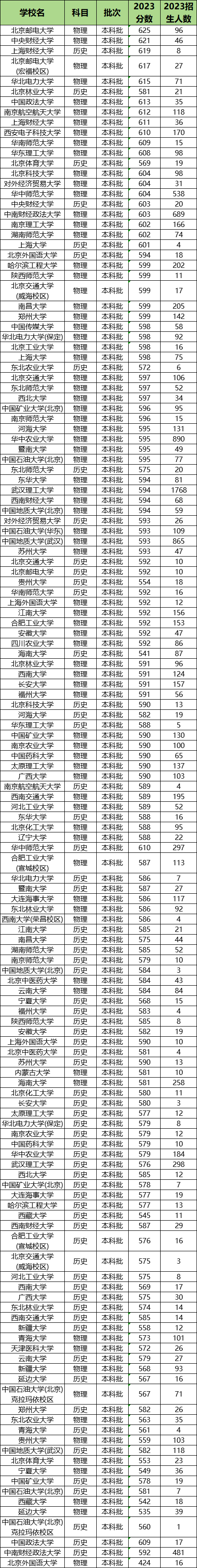 历史普通专业中最低分为579分,招生专业有经济学类、社会学类、外国语言文学类、工商管理类、公共管理类等。