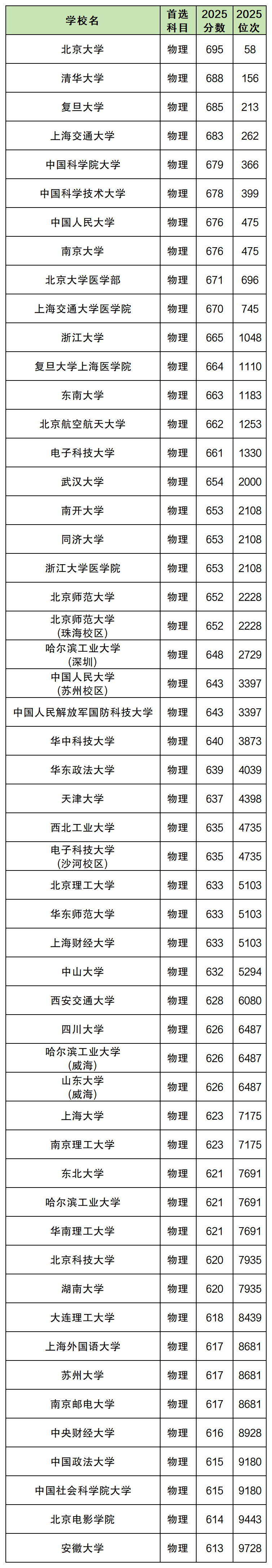 篇幅有限,下面列举2025年在辽宁物理类录取位次位于1万名以内的大学及分数线情况,2025年省排名位次在相应录取位次以内的物理类考生可以考虑报考相关院校。