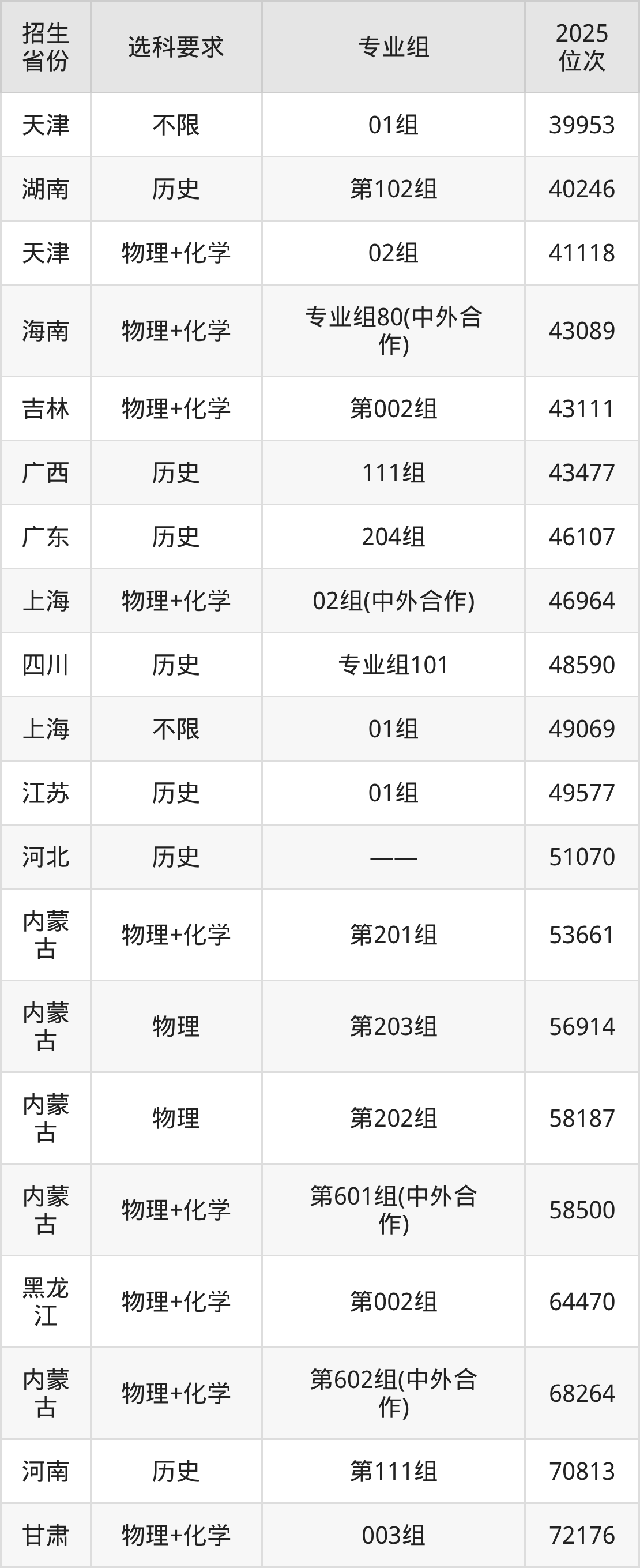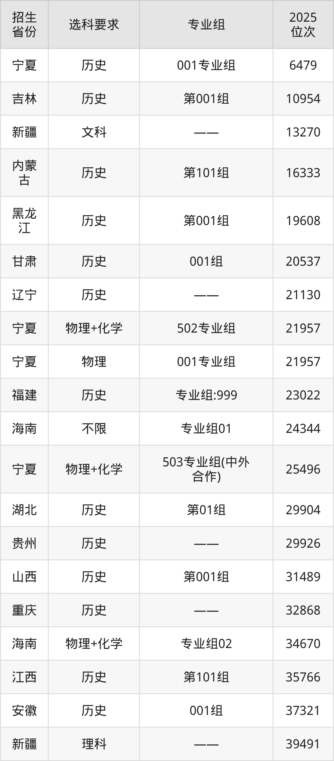 重庆移通学院2025年在全国各省的位次差异较大,最高位次是6479位(宁夏历史类)、最低位次是346607位(河南物理类)。各省具体位次请看下图: