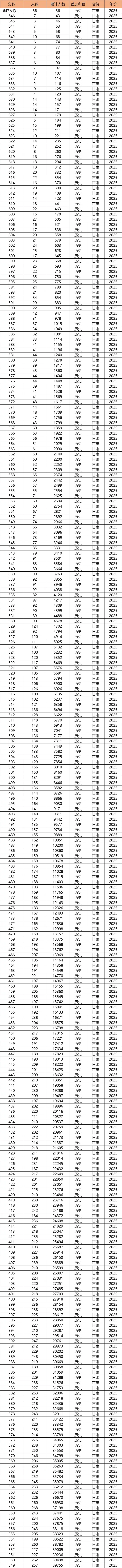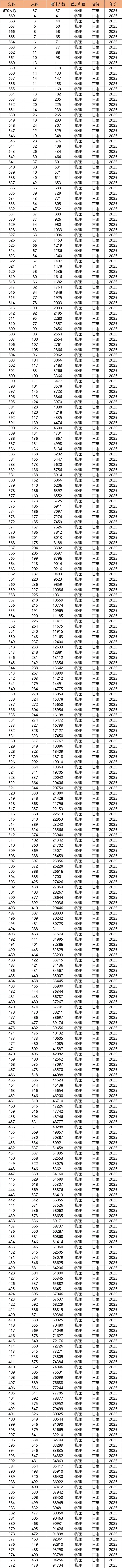 甘肃2025高考历史类一分一段表中,达到647分及以上累计人数共36人,600分及以上累计人数645人,550分及以上累计人数2892人,更多分数段详情见下表: