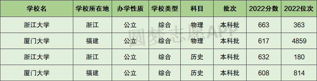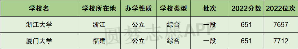 一、浙江大学和厦门大学分数线