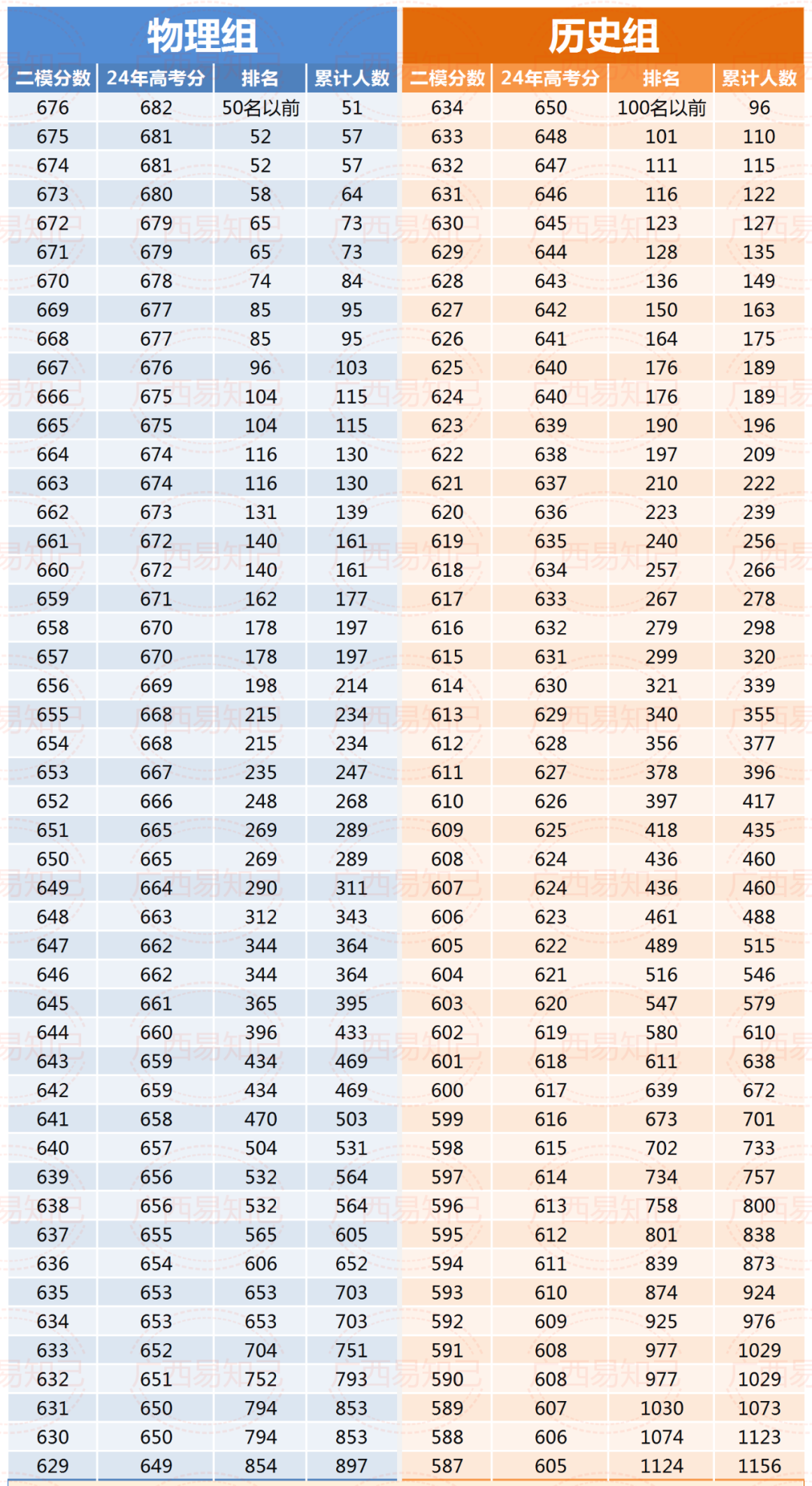 二模分数676分排全区51名,对应2024年高考分数为682分,高考排名为50名以前;