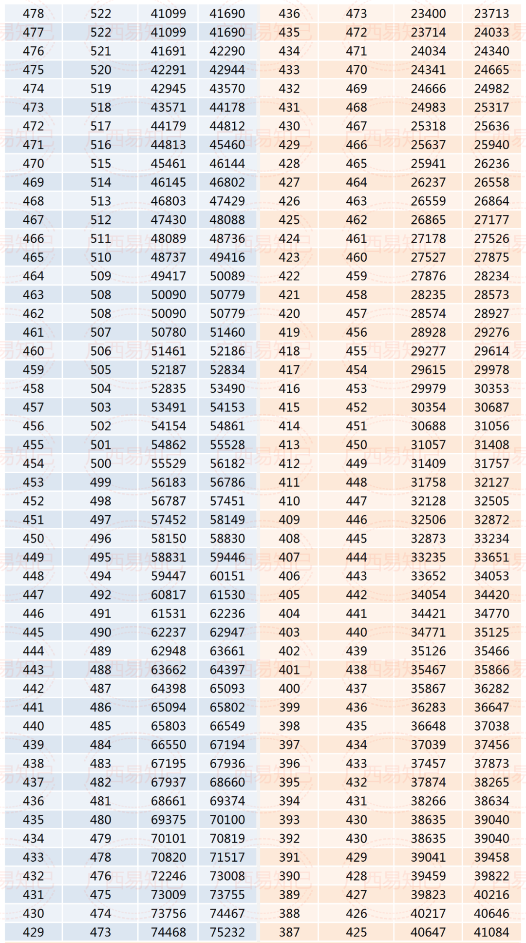 二模分数450分排全区19714名,对应2024年高考分数为487分,高考排名为19447名。