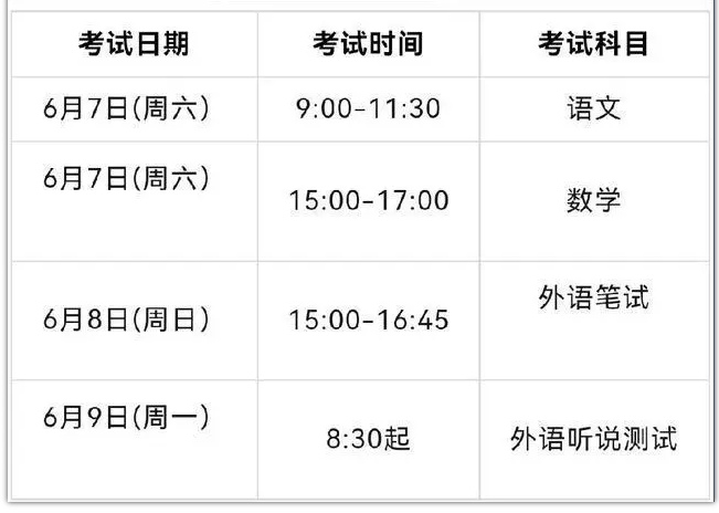 (一)传统高考模式:考两天(6月7日-8日)
