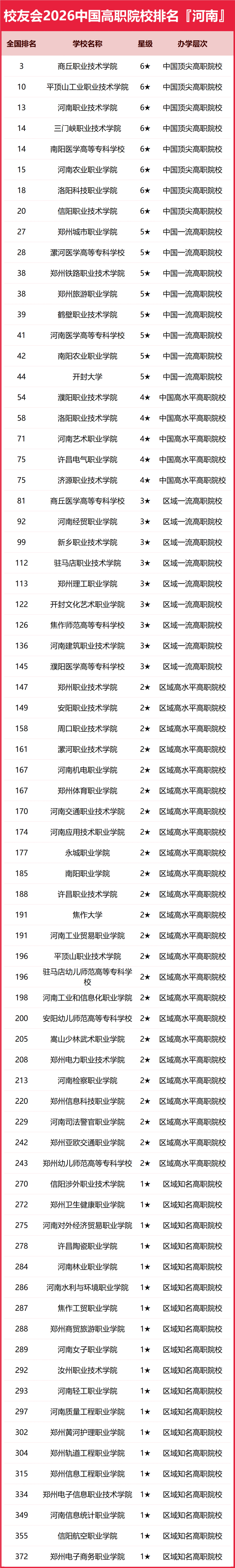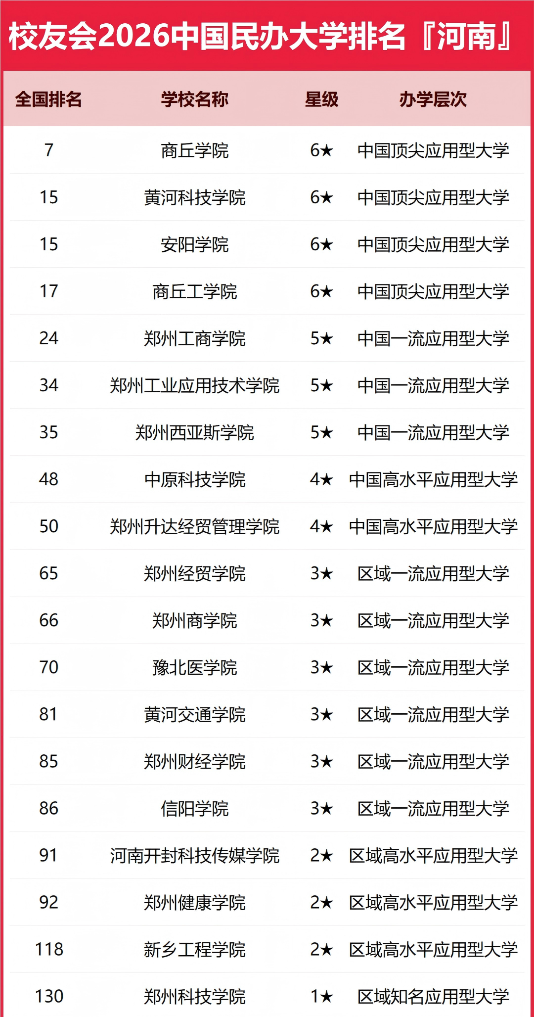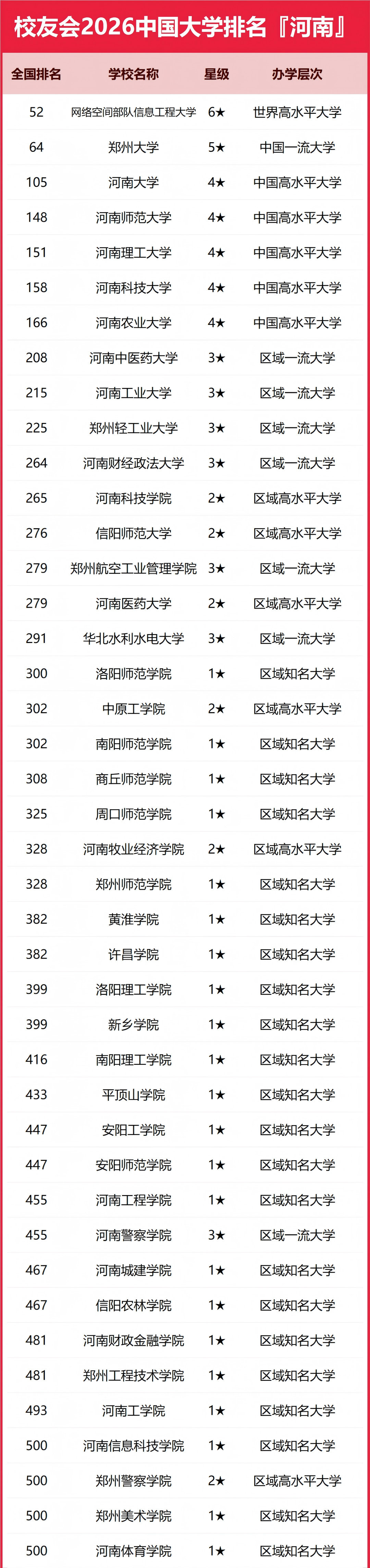 2026年河南省大学完整排名情况如下: