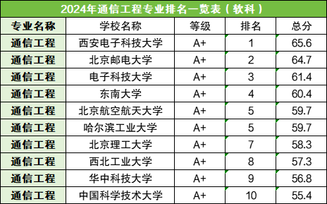 小编根据软科最新的院校专业排名,整理了通信工程专业排名前十的高校,详情如下: