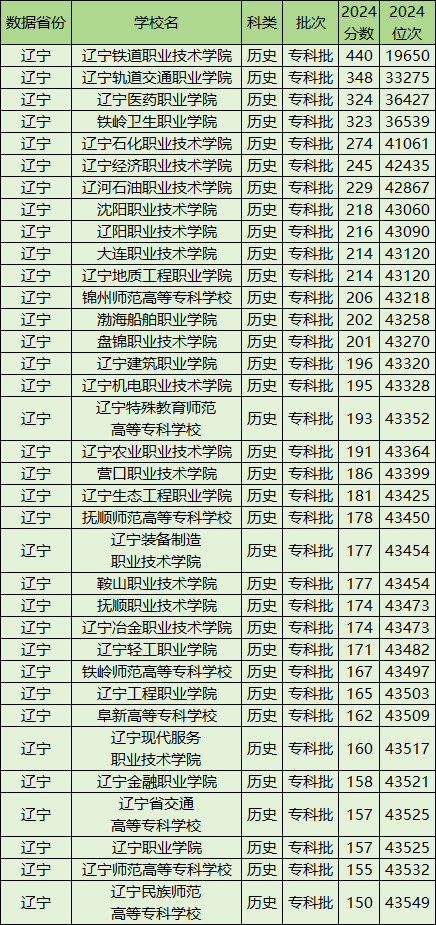 按照辽宁省所有公办大专院校2024年在辽宁省内录取分数线高低排名,为大家整理以下内容。