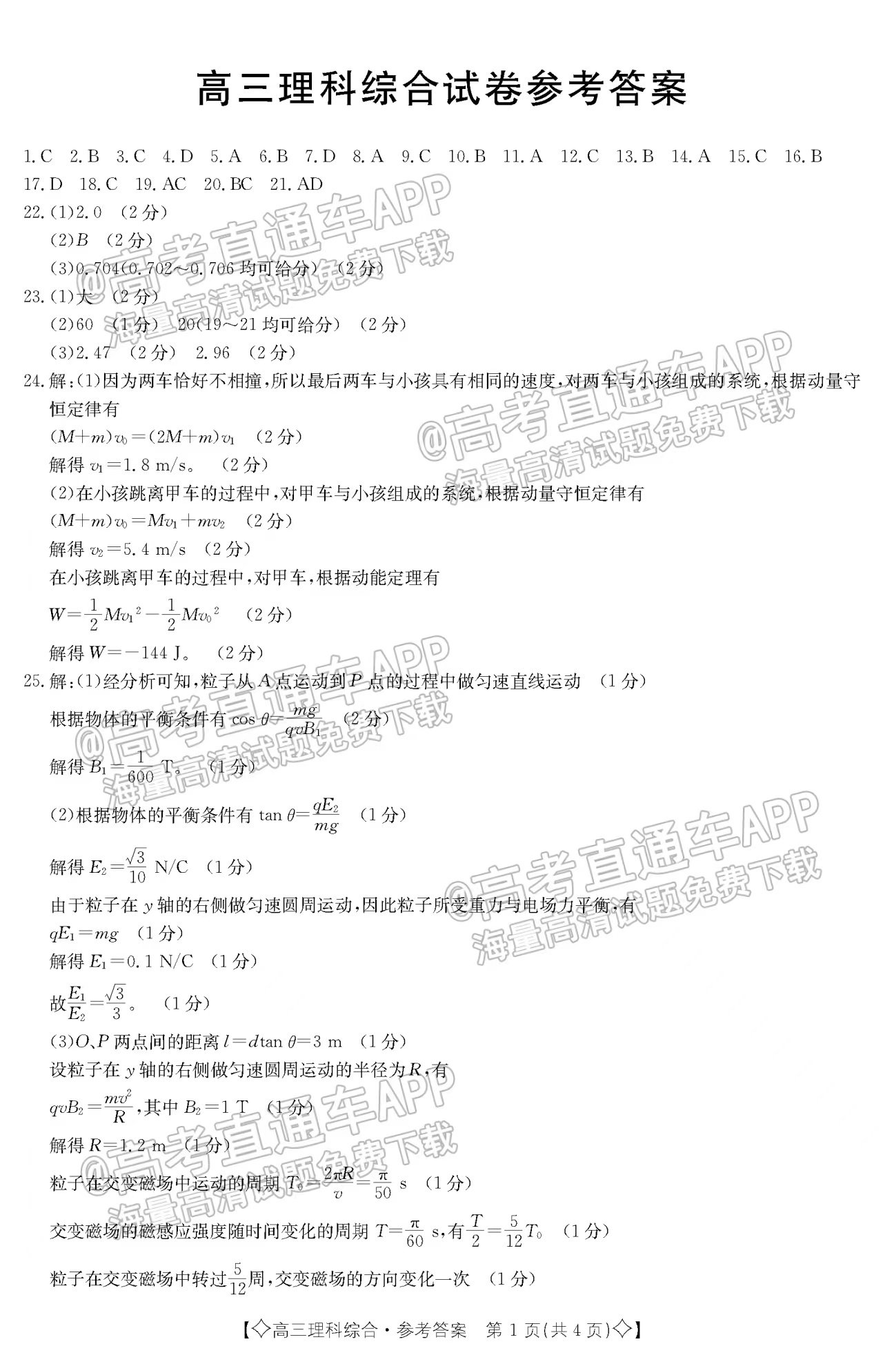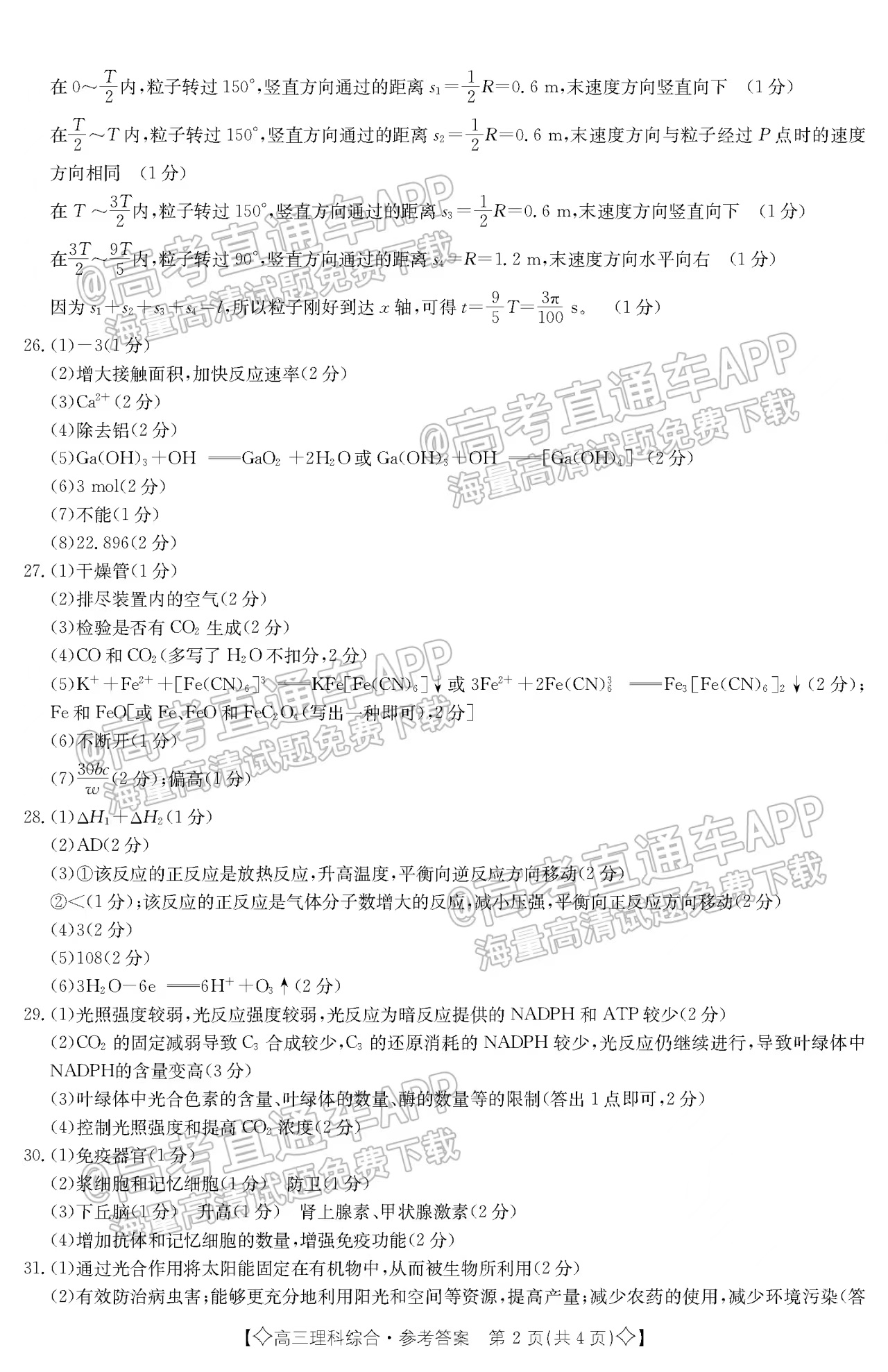 五、2023陕西金太阳高三1月联考理综试卷及答案