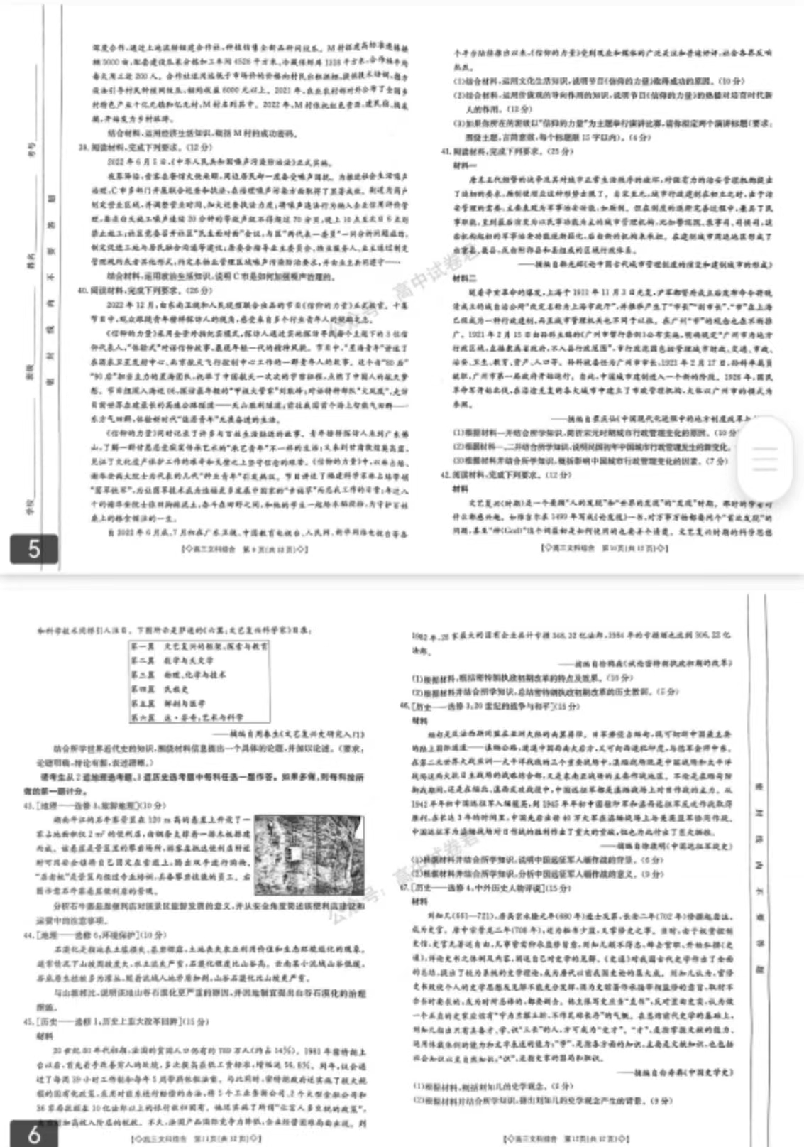 六、2023陕西金太阳高三1月联考文综试卷及答案