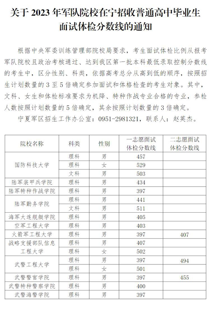 | 2023年军队院校体检、面试最低分数线 | ||||