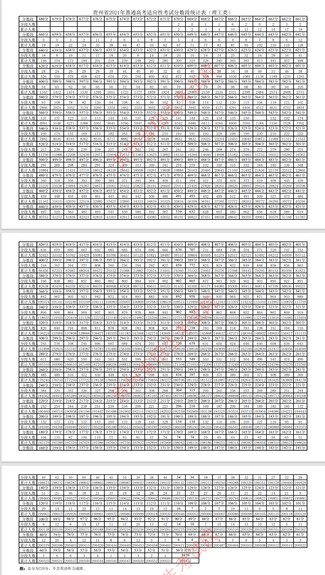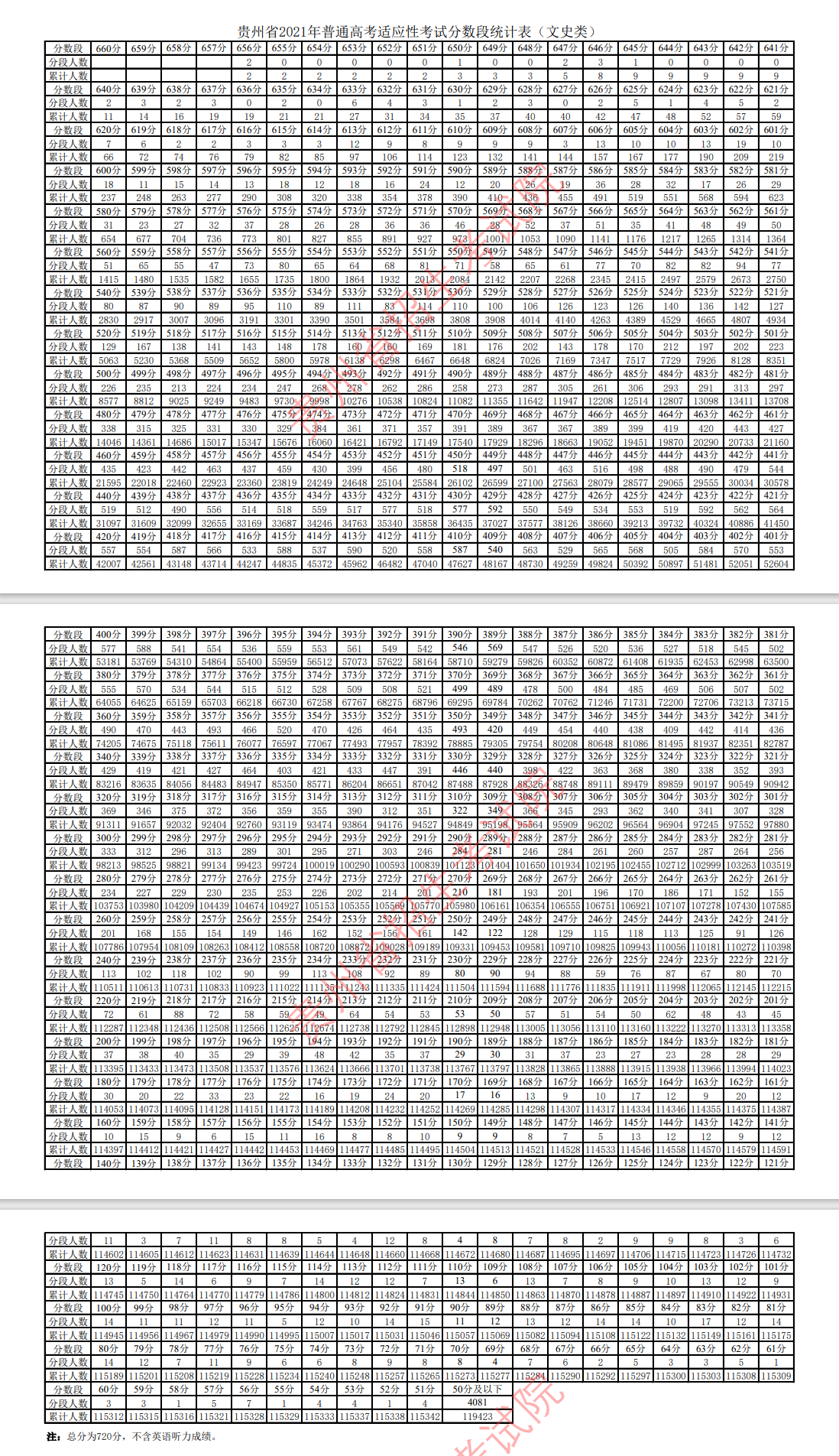 以下为2021年贵州高考适应性考试一分一段表情况: