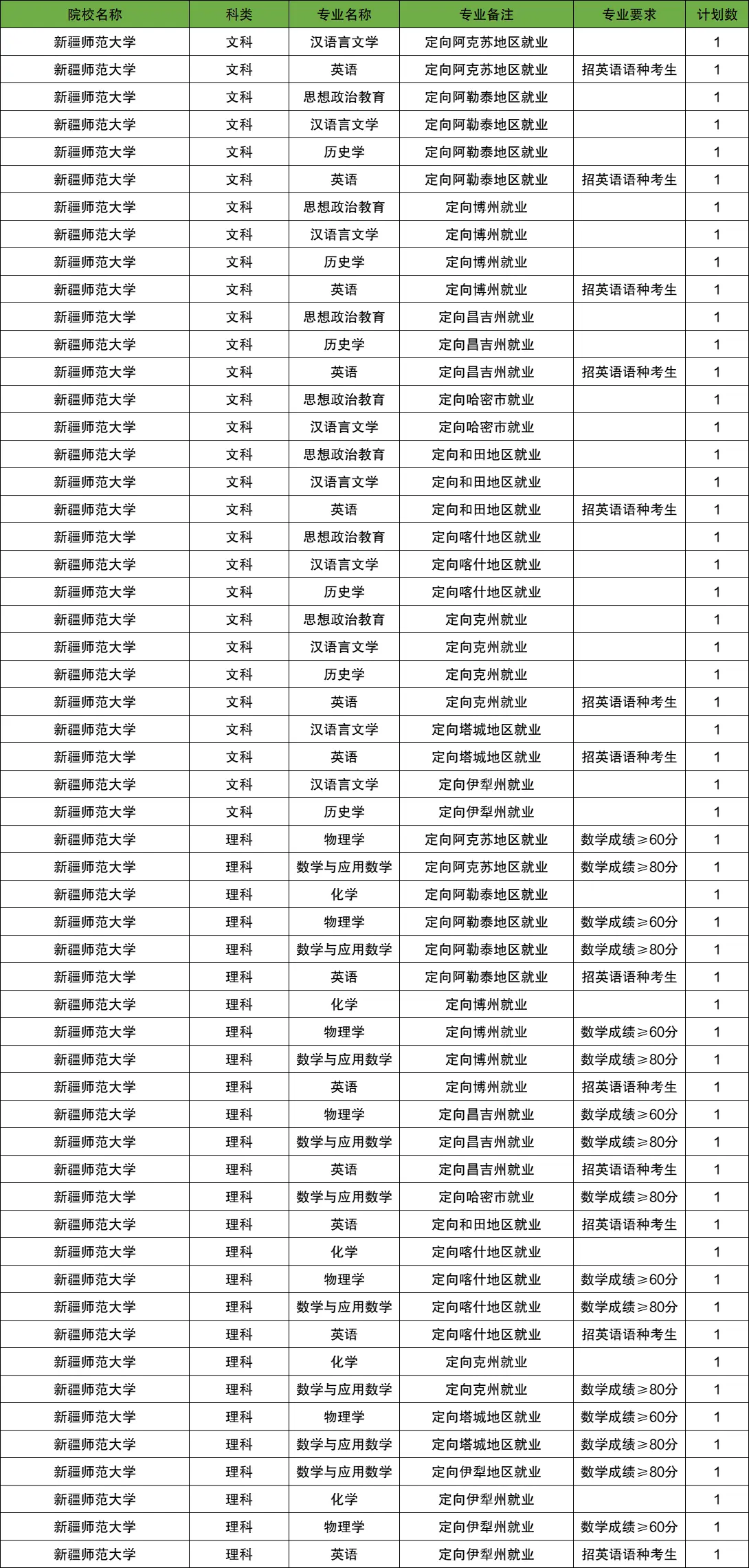 二、新疆免费师范生2025招生计划