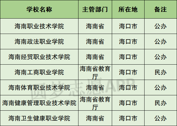 以下将分别介绍海口市专科学校排名前七的学校名单。