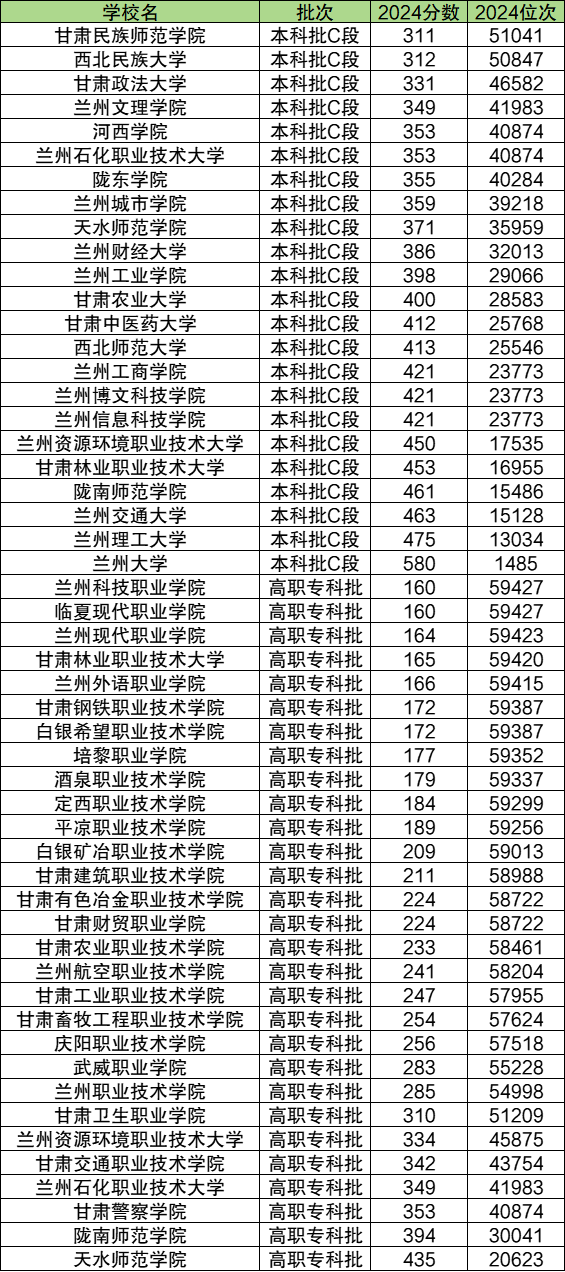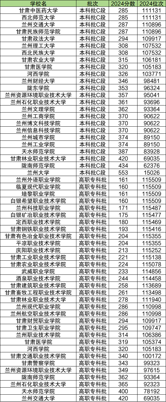 下面是2024年甘肃物理类大学最低录取位次及分数一览表(图片较长,需滑动查阅):