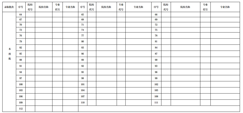 辽宁新高考志愿模式为“专业(类)+学校”,普通类本科批填报112个平行志愿,无专业调剂。