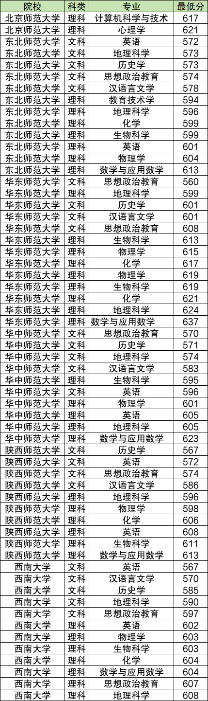 1、国家部属公费师范生院校