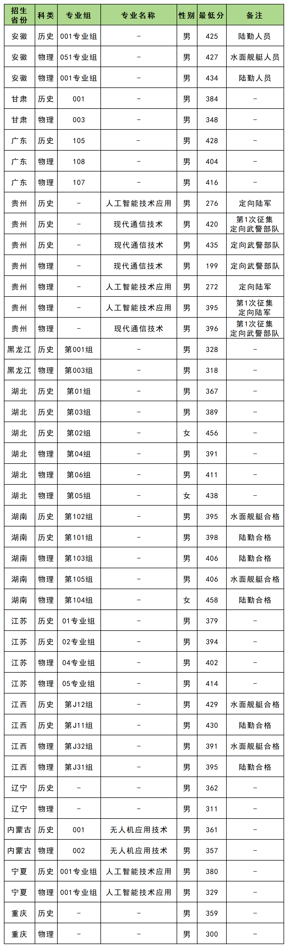 2025年各省定向培养军士院校最低录取分数线及各省最好考的定向培养军士院校名单一览表如下: