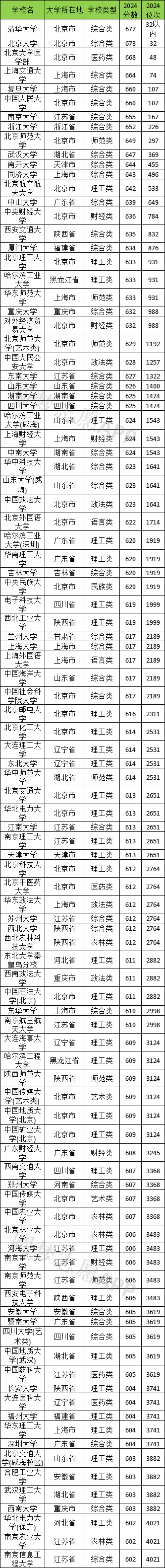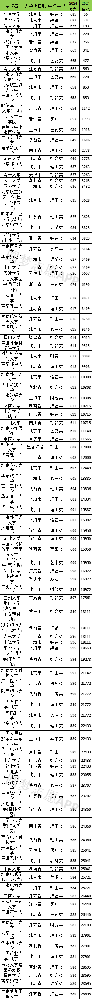 由于本文篇幅有限,在此整理的是2024年全国各大学(公办)在河北省物理科目和历史科目的录取分数线TOP100一览表,详情如下: