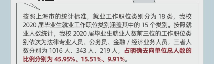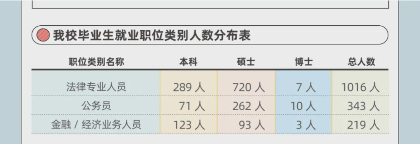 根据中国政法大学2021年毕业生就业质量报告中列出,已经落实就业单位的2077位毕业生中有873人进入机关单位就业,这意味着什么?意味10个人中就有4个人进入了机关单位工作,捧上让很多人羡慕的铁饭碗!!!
