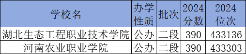 390分能上的大学中公办的有湖北生态工程职业技术学院、河南农业职业学院。