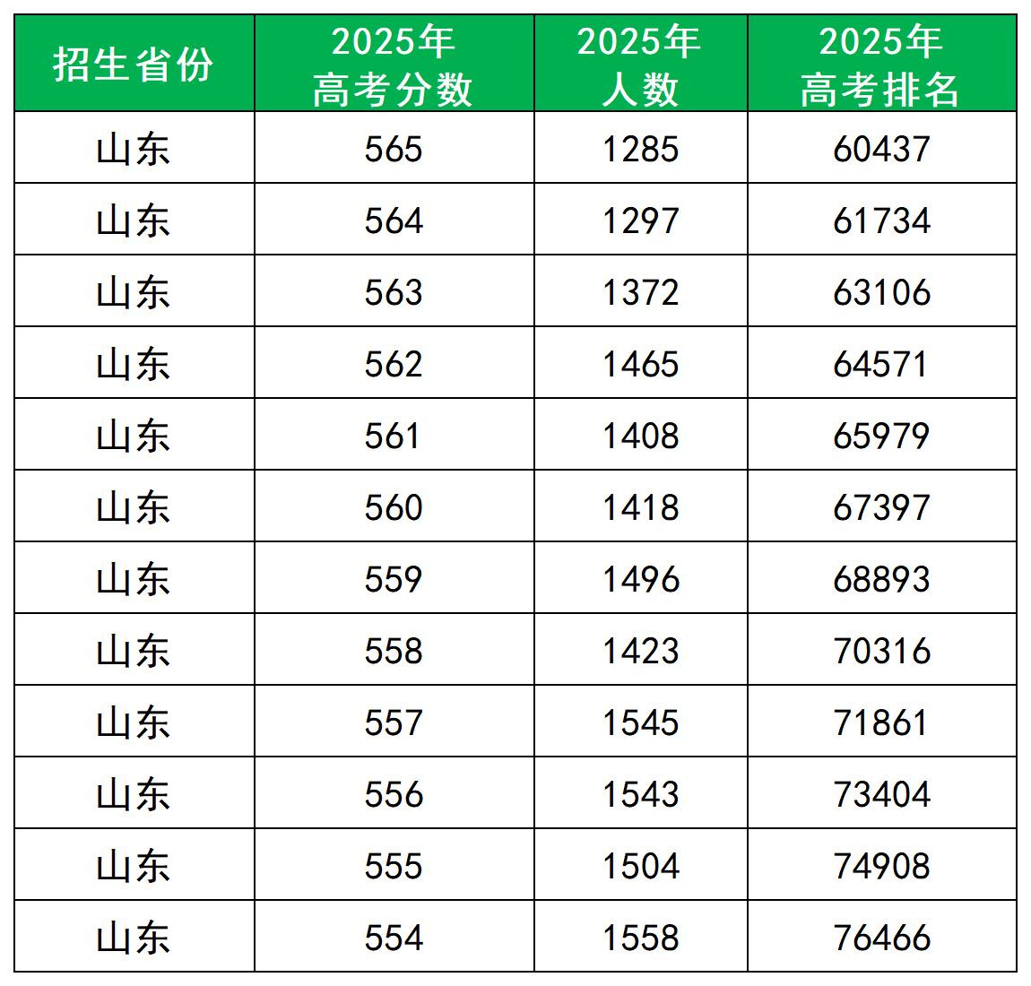 利用等效分查询2025年山东高考一分一段表,560分对应山东高考省排名为65980-67397名。