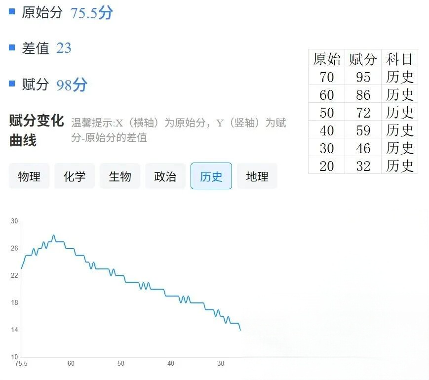 历史:原始分70分能赋95分、60分能赋86分、50分能赋72分。