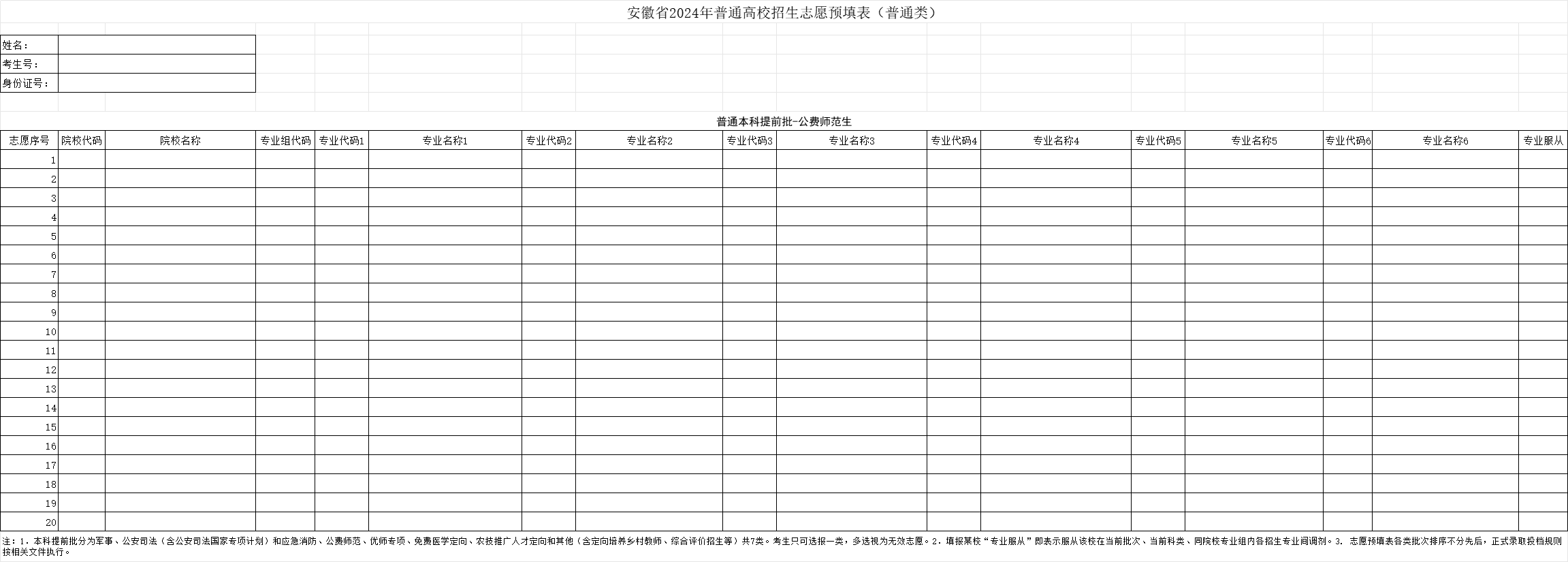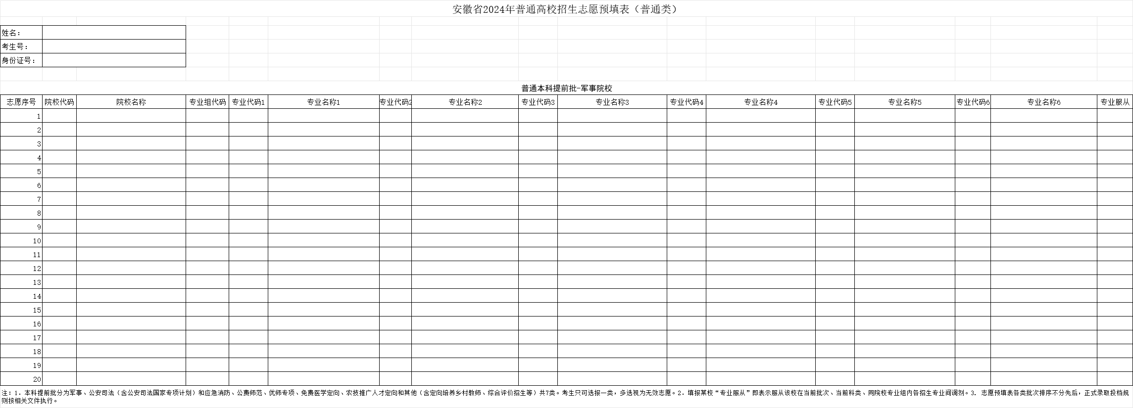 1、本科提前批志愿表