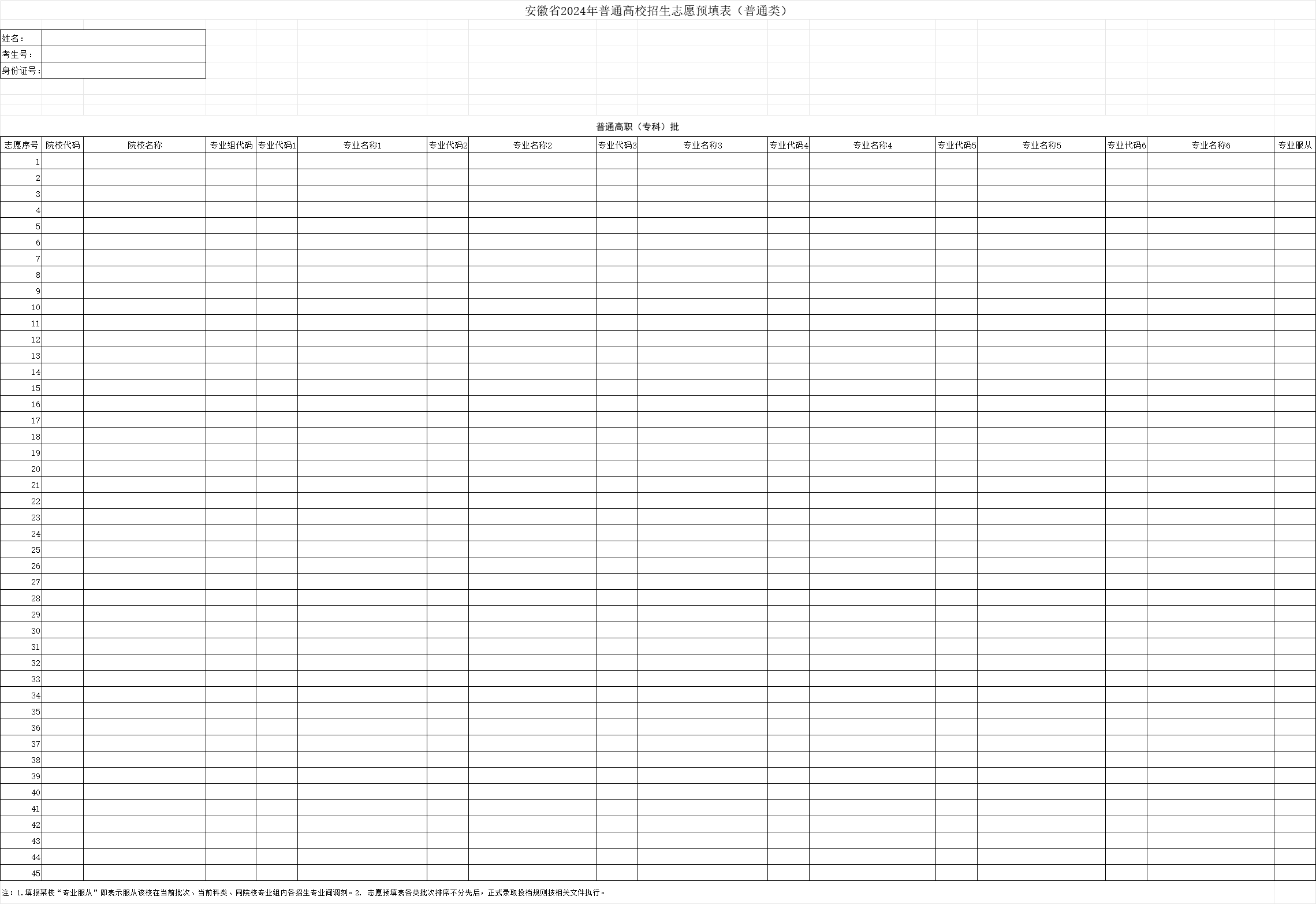 一、安徽新高考志愿样表
