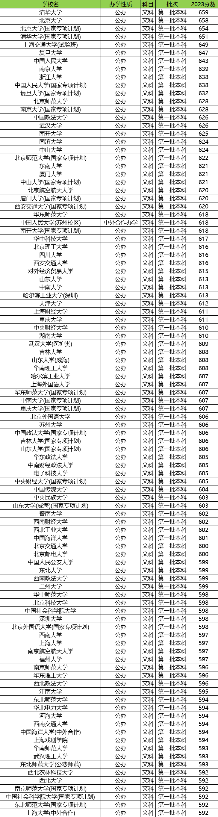 本文篇幅有限,只能列举文科、理科分数最高的100所大学,各位可以在圆梦志愿APP查看全国能上的大学。