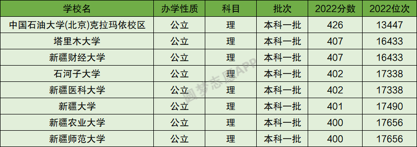 理科收分最低的是新疆师范大学,其2022年最低分为400分(超新疆理科一本线0分),录取位次为17656位。