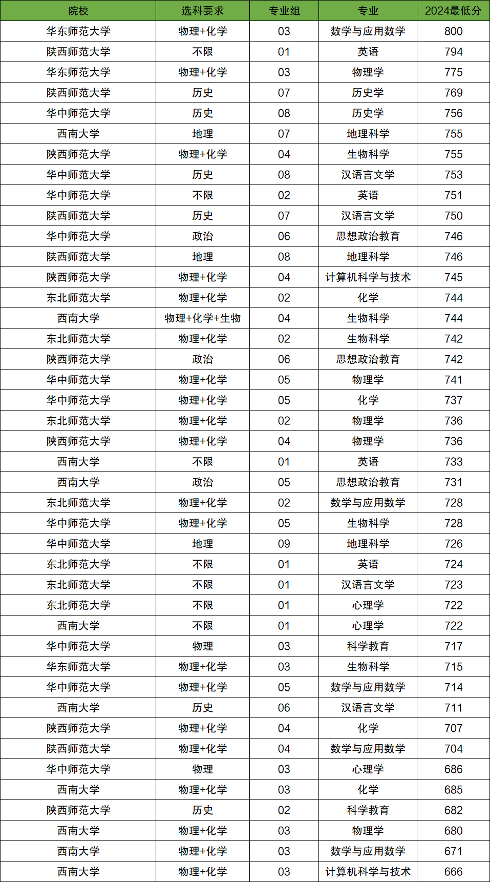 除此之外还有东北师范大学、陕西师范大学等,下表为具体学校名单及分数线。