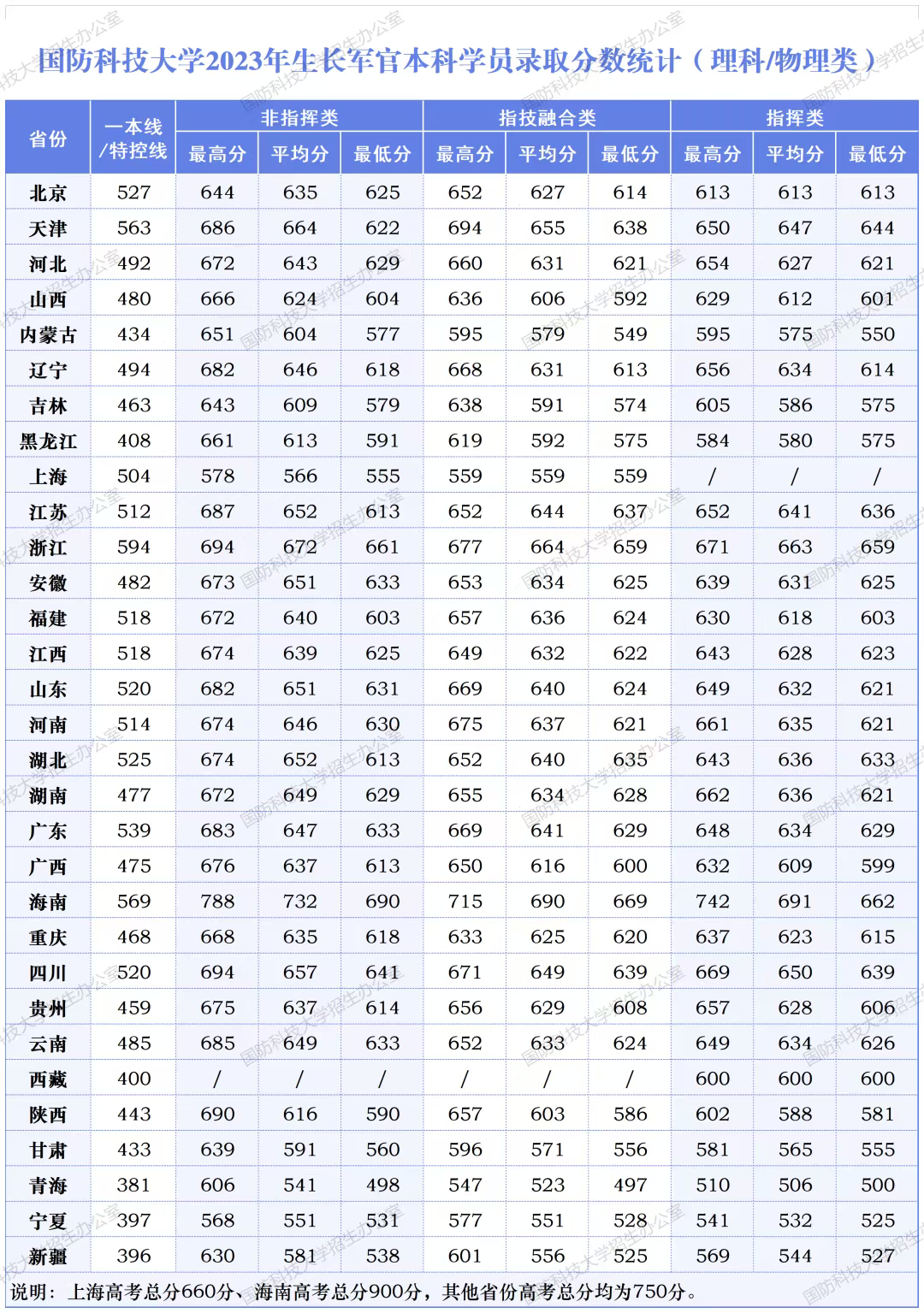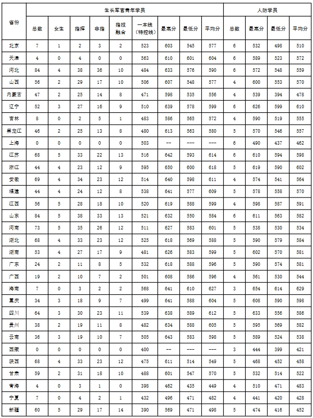 国防科技大学2023年录取分数线(生长军官本科学员)
