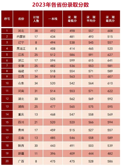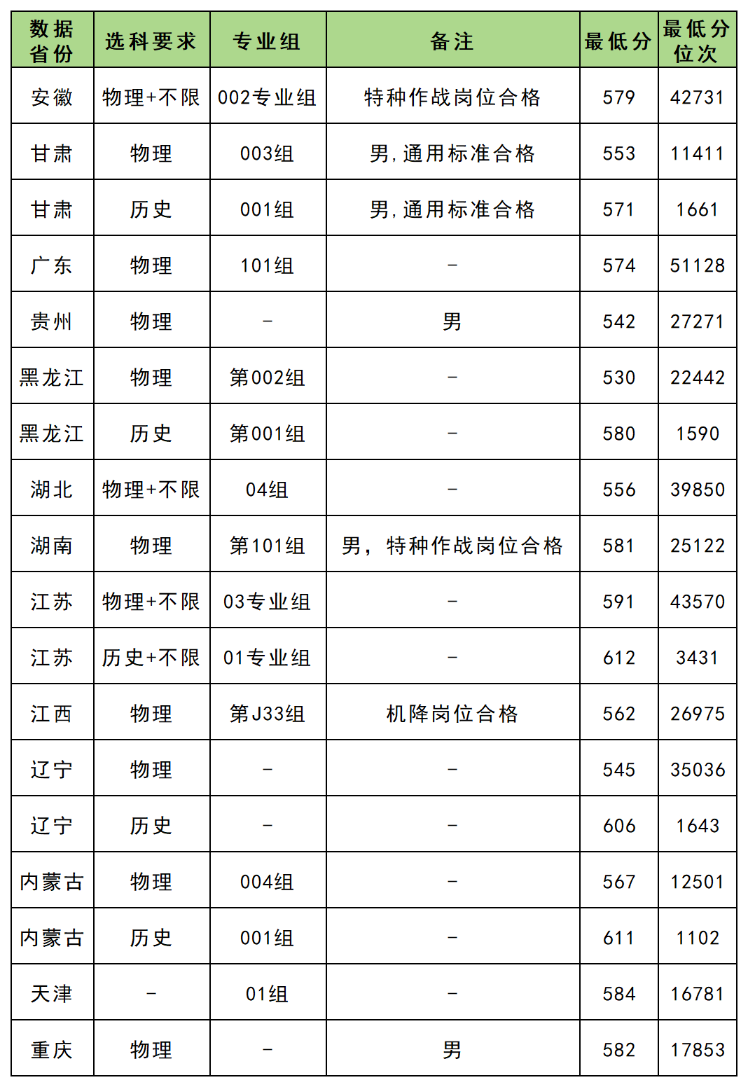 篇幅有限,以下仅举例部分院校在全国近三年的录取分数,包括国防科技大学、陆军工程大学、陆军步兵学院等。