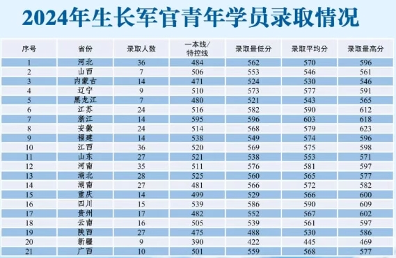 国防科技大学2024年录取分数线(生长军官本科学员)